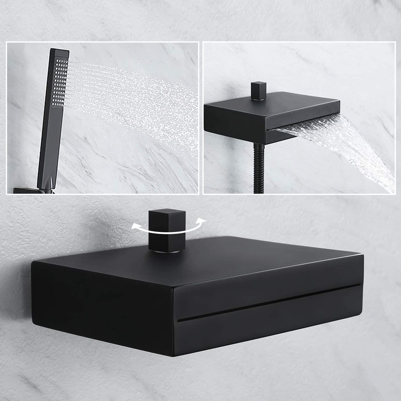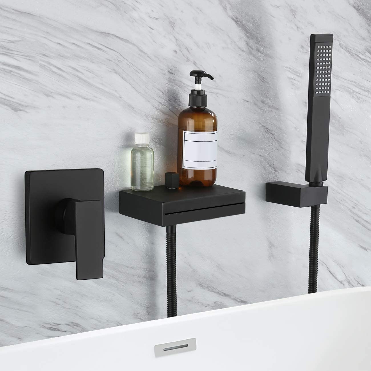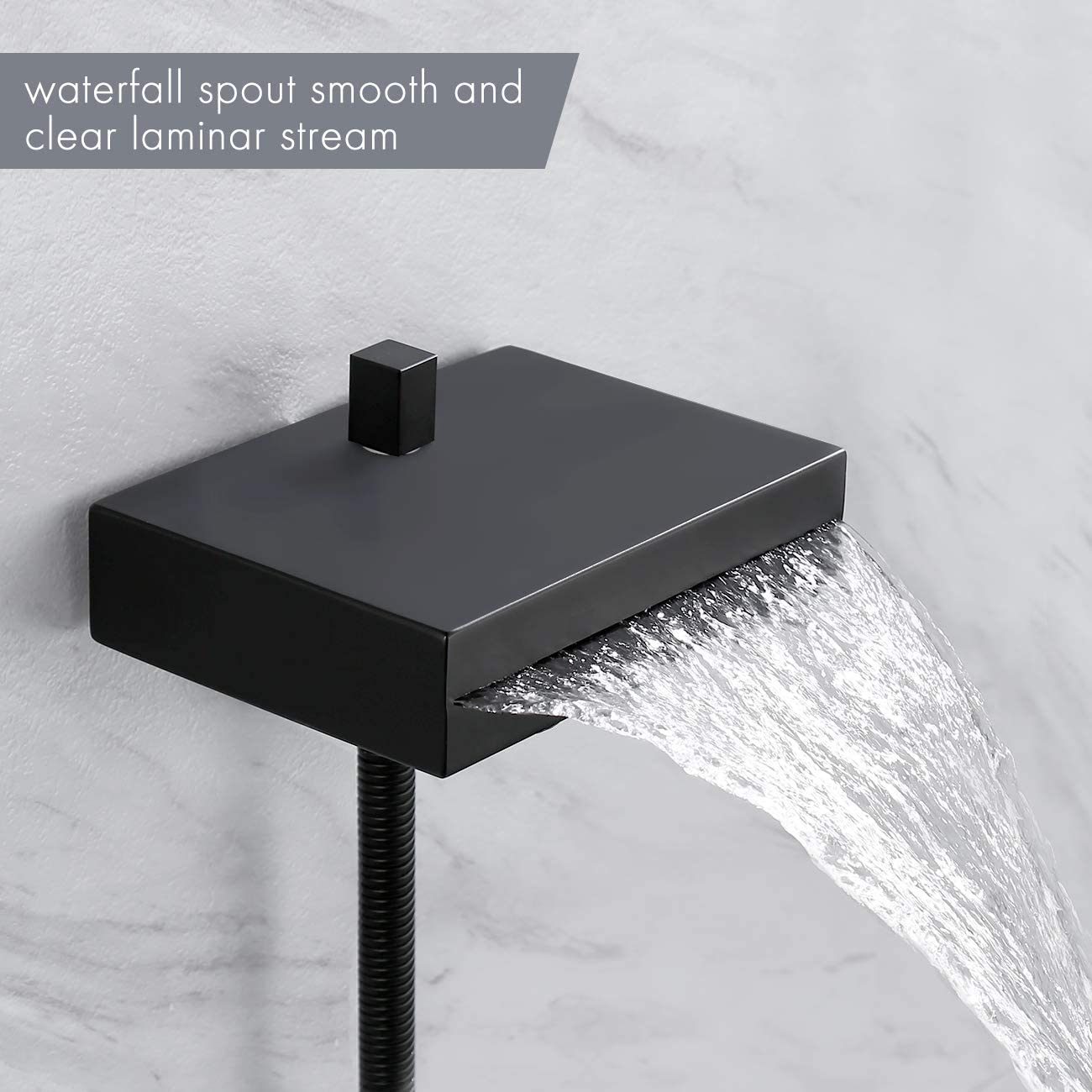 Juego de grifo de bañera de mano con cabezal de ducha, boquilla de cascada, color negro mate (válvula de entrada y kit de moldura)