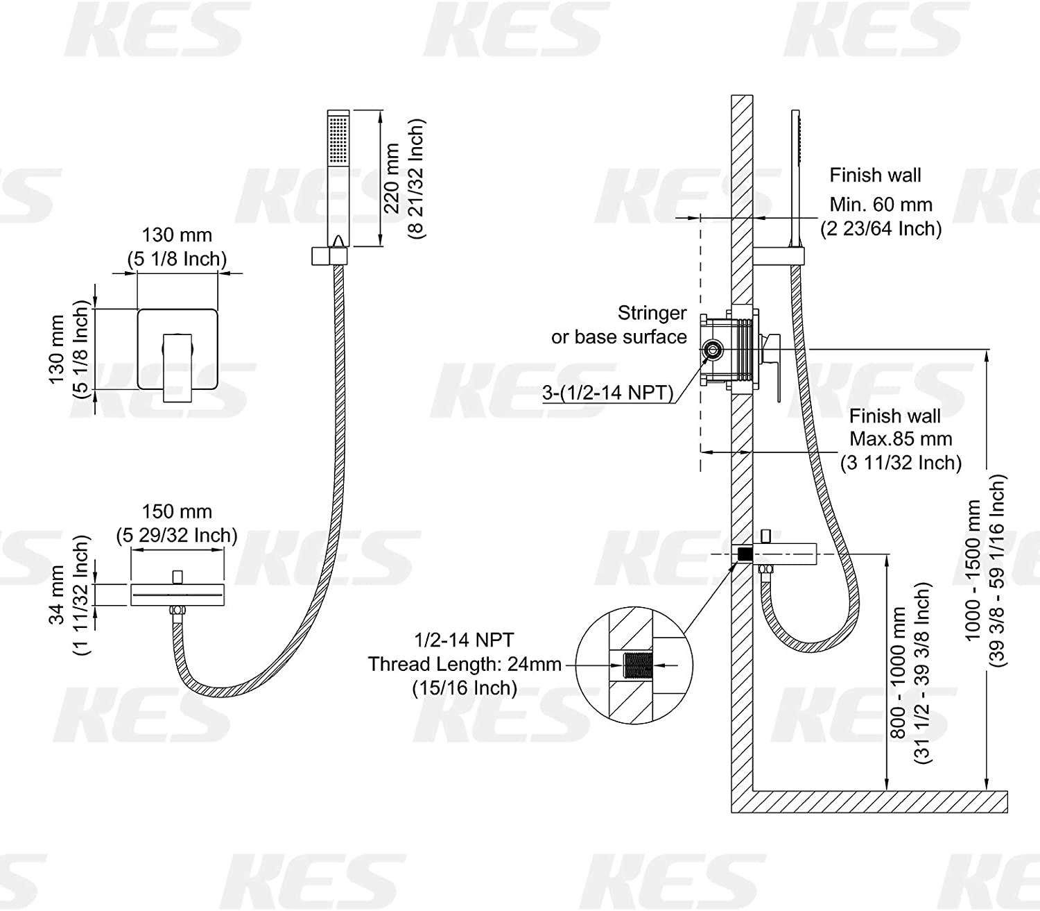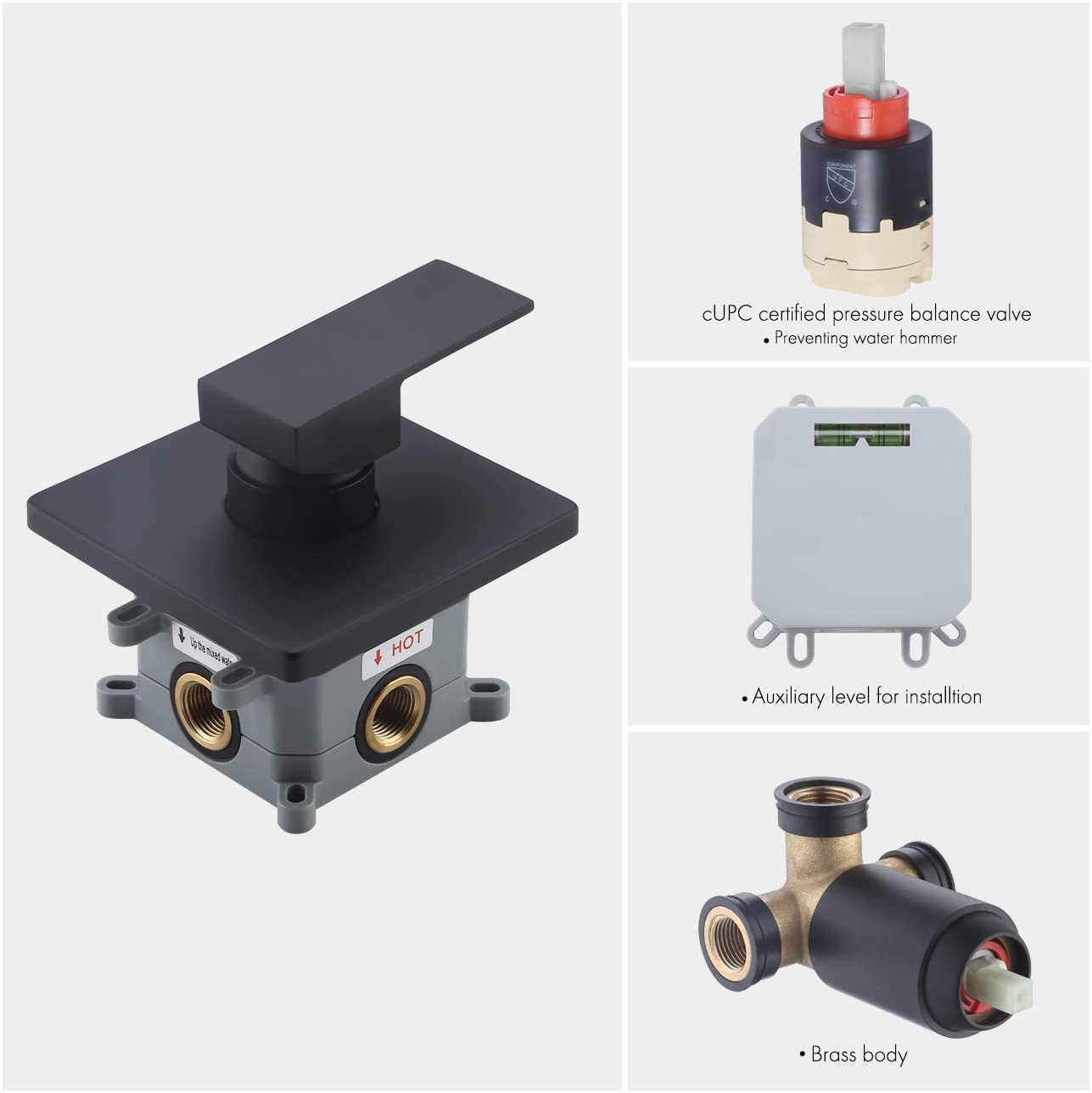 - Martillo de agua para evitar el agua: el cuerpo de la válvula de ducha está hecho de latón macizo de una sola pieza, garantiza calidad y durabilidad. Además, la válvula de ducha viene con una función adicional para evitar el martillo de agua, funciona más silencioso y protege tu sistema de tuberías, lo que te ofrece una experiencia de ducha cómoda que parece bajo la gota de lluvia natural. (Nota de instalación: la distancia ajustable para la instalación de la caja de válvula es de 2.362 in a 3.346 in)