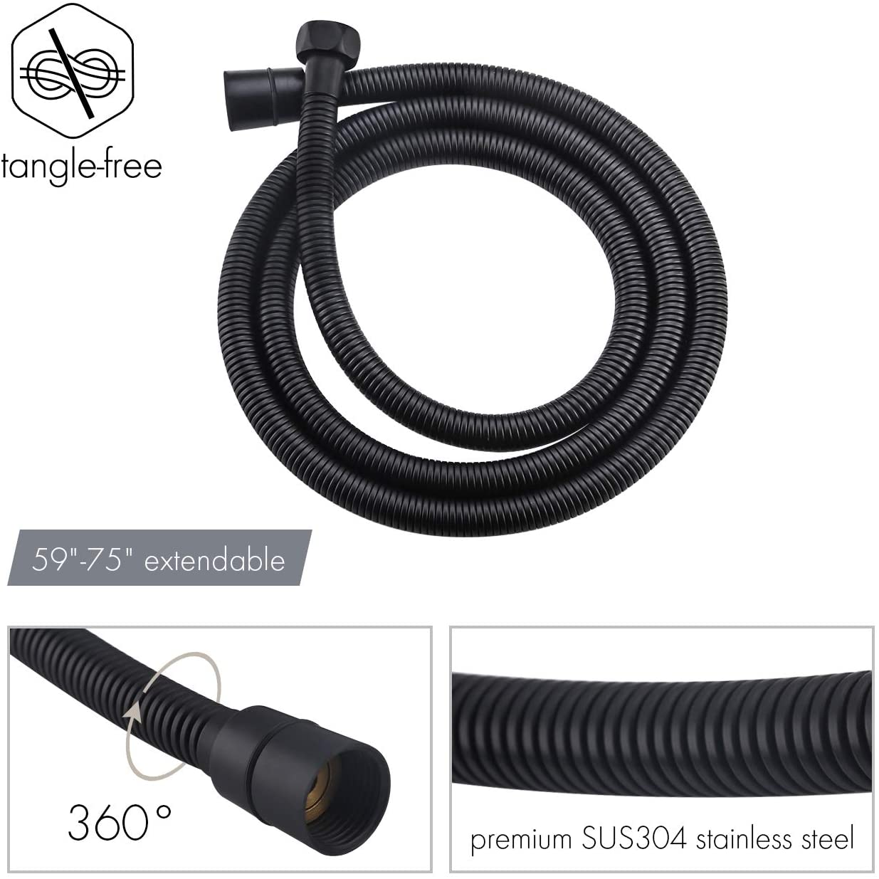 - Manguera de ducha sin enredos: la manguera de acero inoxidable reforzado con espiral es un diseño sin enredos y se puede extender de 1,5 a 6.2 ft, conveniente para diversos propósitos, como limpiar la ducha e incluso bañar a tus mascotas.